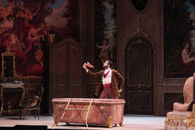 His early stage debuts include the roles of Morales in CARMEN; Rector in MESE MARIANO by Giordano at the Teatro La Nuova Fenice, Don Alvaro in IL VIAGGIO A REIMS at the Rossini Opera Festival in Pesaro; Demon in SAN GUGLIELMO DUCA D’AQUITANIA by Pergolesi under the direction of Christophe Rousset at the Pergolesi Spontini Festival in Jesi; and at the Rieti Festival as Figaro in IL BARBIERE DI SIVIGLIA under the direction of Fabio Biondi.